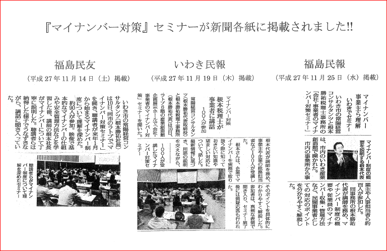 『マイナンバー対策』セミナーが新聞に掲載されました!!