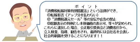 今年(平成26年)に入って、商工会議所様や各団体様の主催で上記セミナーを各地で開催させていただいたところ、それを聞いて多くの企業から問合せとオファーが殺到しています。そこで弊社では、4月1日の施行前に“最終対策セミナー”を開催する事といたしました。これまでご出席いただいた、経営者、営業担当者、経理担当者の皆様からは、「絶対に聞いた方がイイ!」との声が上がっております。特に商売をされている方は、被害者(得意先からアップ分がもらえない)にも、加害者(仕込先へ払わない)にもなる場合があり、そのことを知っておかないと、違反行為に該当してしまいます。そうならないためにも是非、ご参加下さい。