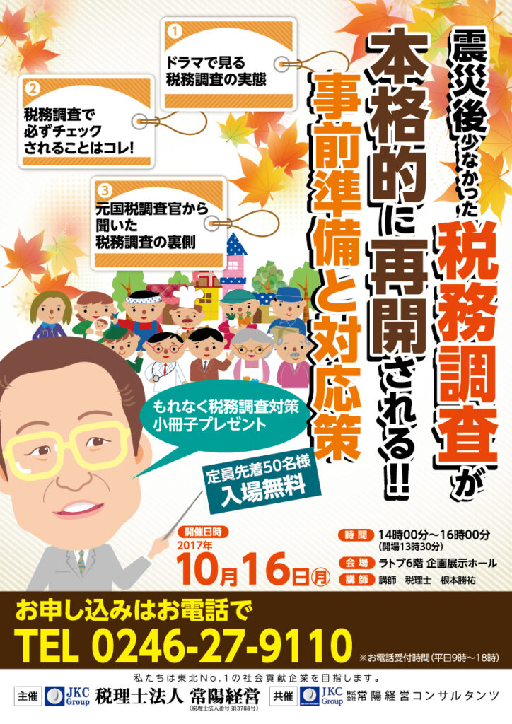 『税務調査事前準備と対応策』セミナーを開催いたします!!