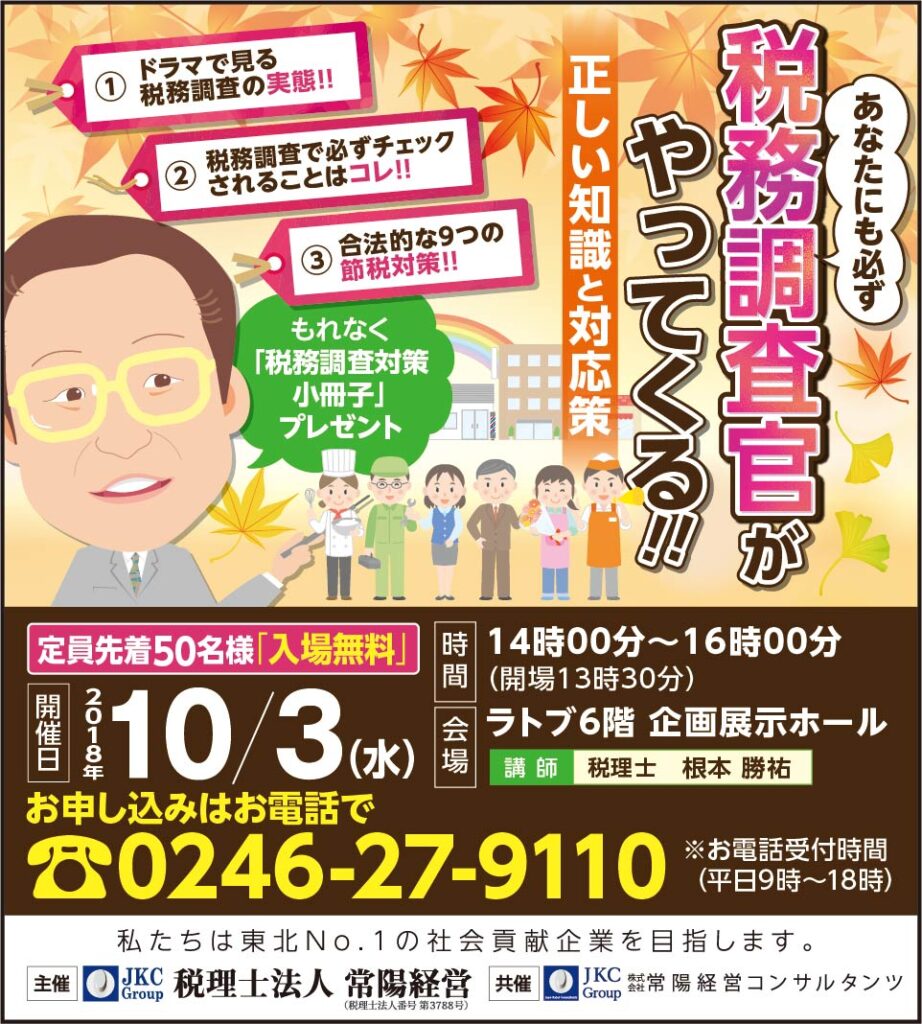 参加者にはもれなく『税務調査対策小冊子』プレゼント!!